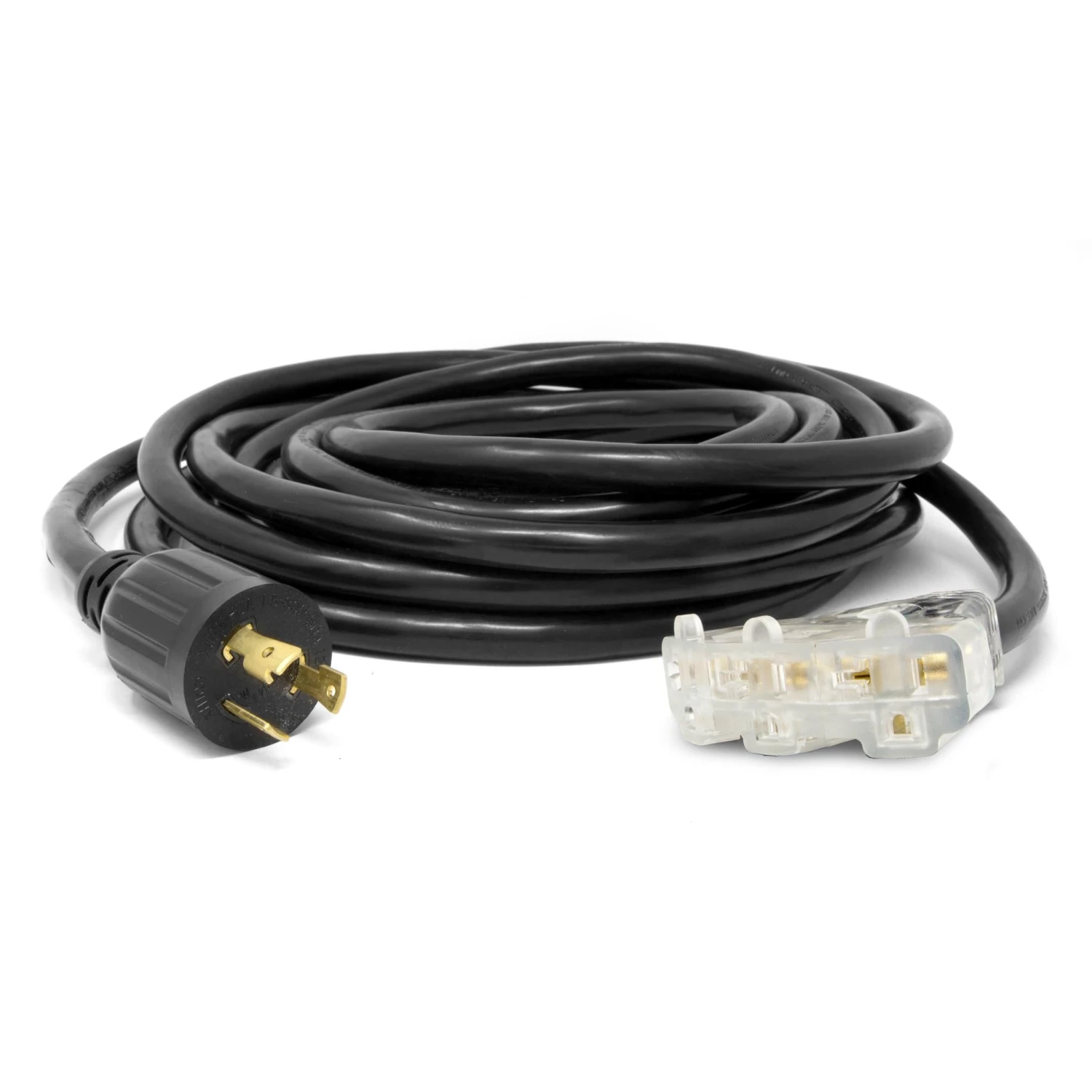 Remember when your power cords were actually powerful? The WEN 25-Foot Generator Extension Cord handles up to 30 amps of electricity. This reliable power cord converts electricity generated by L5-30R outlets into three 5-20R receptacles. The vinyl thermoplastic housing features insulation that is rated for outdoor use, providing reliable power while remaining flexible even in the coldest of temperatures. This cord acts as the perfect companion for your WEN generator, keeping the power a safe distance from the noise and carbon monoxide created by gas generators. Backed by a two-year warranty. Remember when you had some power in your life? Remember WEN.